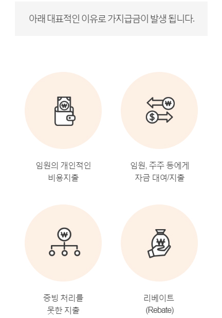 아래 대표적인 이유로 가지급금이 발생됩니다.