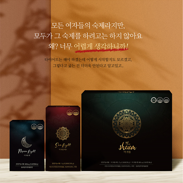 더쉬움다이어트는 아침 저녘 한포씩 먹는 다이어트로 더 쉬움 엠 moon light, 더 쉬움 에스 sun light 으로 구성되어있습니다.