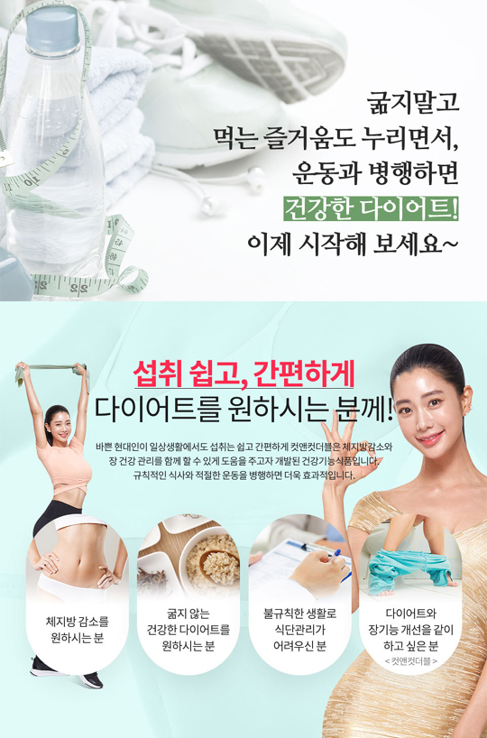 경남제약 컷앤컷다이어트는 규칙적인 식사와 건강기능식품을 병행하는 다이어트입니다.