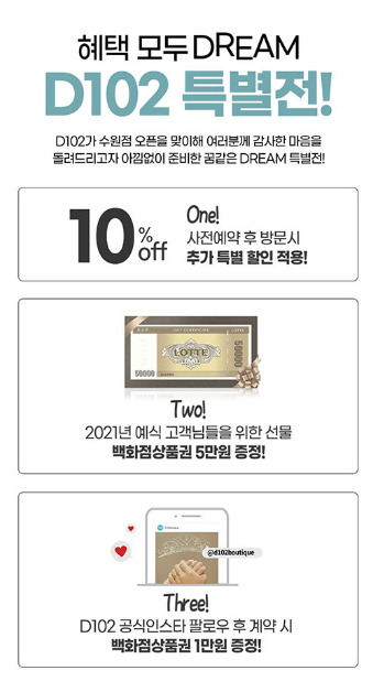 ③ D102 공식 인스타 팔로우 후 계약 시 백화점상품권 1만 원 증정!
