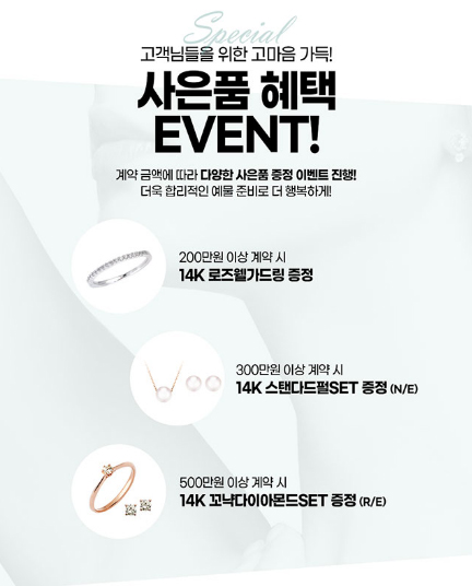 - 300만 원 이상 계약 시 14K 스탠다드펄SET 증정 (N/E)