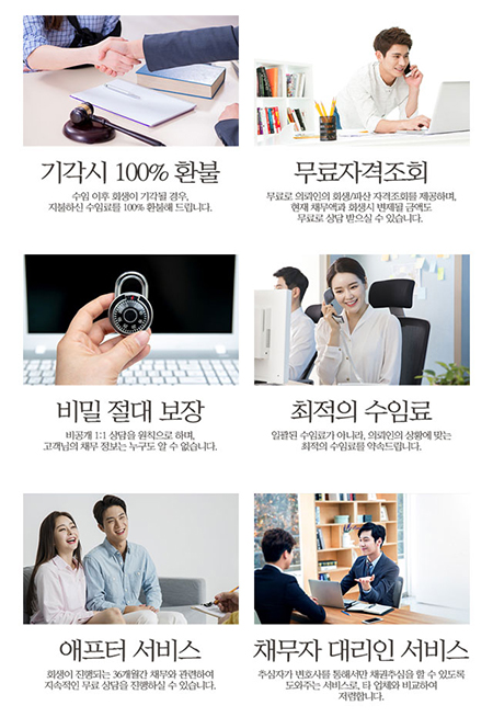 - 수임 이후 회생이 기각될 경우 지불하신 수임료 100% 환불