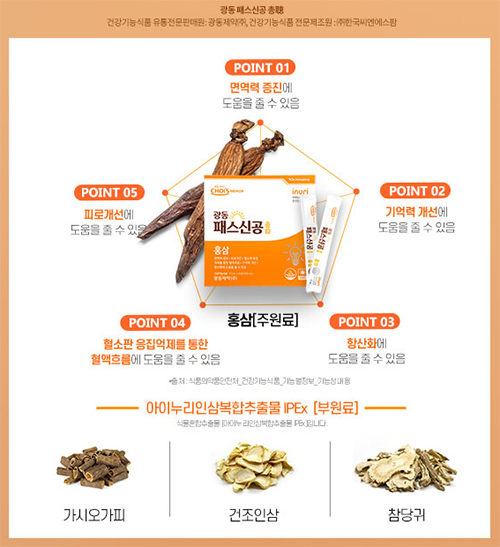 이처럼 광동 패스신공 총 주원료인 홍삼에는 다량 함유된 사포닌 성분은 원기회복, 면역력 증강, 자양강장, 항산화 등에 도움을 받을 수 있고, 산화질소, 활성산소 등이 활발하게 분비되면서 자연스럽게 면역력 강화에 도움이 된다고 하네요.