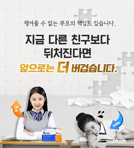 체력 저하는 집중력과 학습 능률 모두 절반 수준으로 감소, 그만큼 스트레스와 면역력을 꾸준히 관리해주는 것이 학업 성적은 물론, 건강까지 관리하는 길인 것입니다.