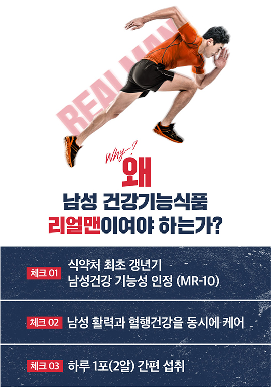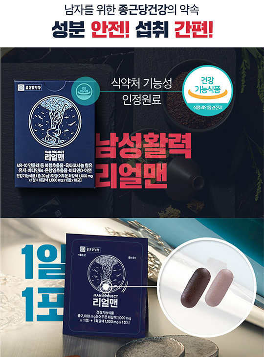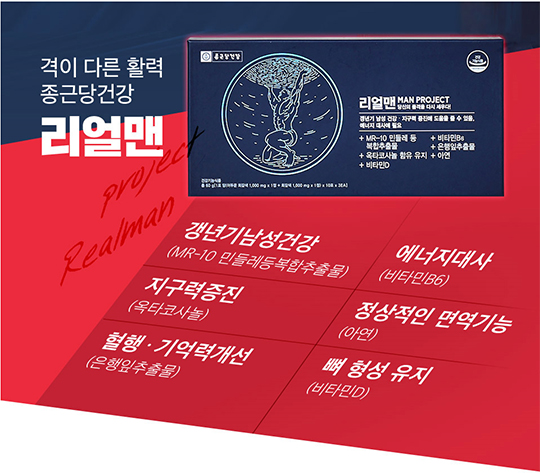 종근당건강리얼맨으로 활력 지구력 체력 UP 남성호르몬 관리 시작하세요~!