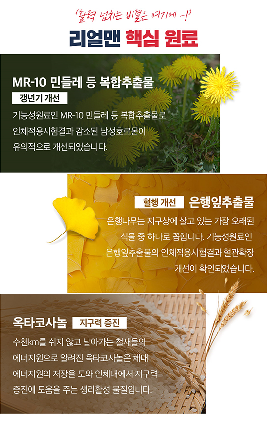 - MR-10 민들레 등 복합추출물로 남성호르몬을 개선!