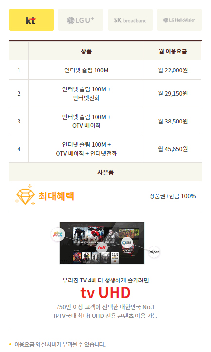 통신 3사 lg sk kt lg헬로비전 인터넷tv가입 (인터넷티비변경 상품) 인터넷가입현금지원 + 인터넷가입사은품 최대혜택 비교해보시고 결정하세요.