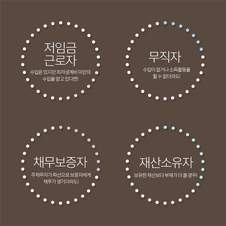 이때, 최저생계비란 신청인 본인 뿐만 아니라 본인이 경제적으로 부양해야 하는 가족까지 산정할 수 있고 법원에서 인정하는 사람 수에 따라 최저생계비가 달라집니다.