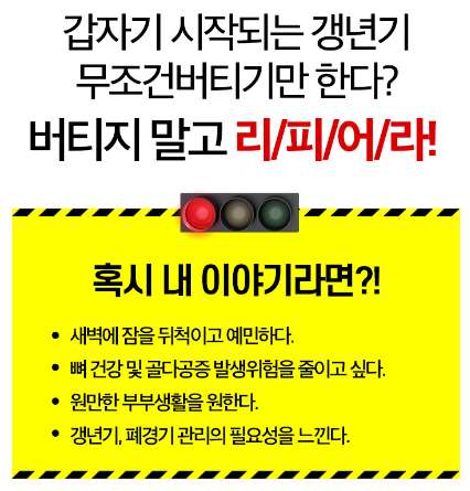나도 모르게 시작된 버티기 힘든 갱년기 증상 지금 관리가 필요하며 엿어 갱년기 증상 두드림 리피어라와 함께 케어하세요 ~♥