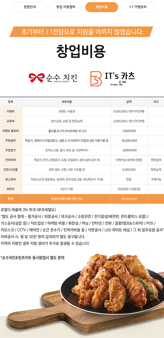 순수치킨 & 잇츠카츠 프랜차이즈 창업비용