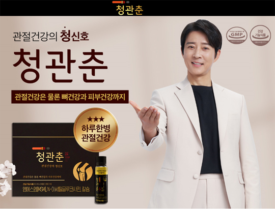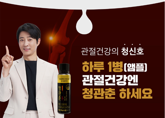 관절 건강의 청신호 최수종 관절 광고 청관춘 하루 한 병으로 관절 건강 · 뼈 건강 · 연골 건강 · 피부 건강까지 챙겨요.