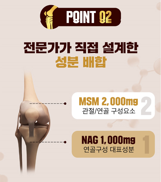 건강한 관절을 위해서는 핵심원료의 배합이 중요합니다.