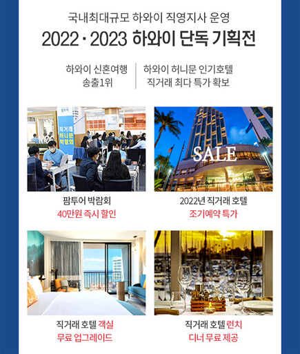 3. 국내최대규모 하와이직영지사 운영 2022 · 2023 하와이 신혼여행 경비 단독 기획전