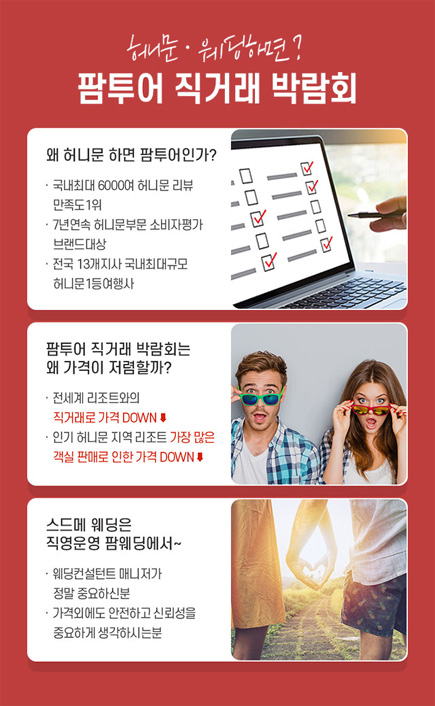 · 허니문여행사 팜투어 박람회 당일 단독 프로모션시즌 한정 사전 예약 초특가 + 혜택!