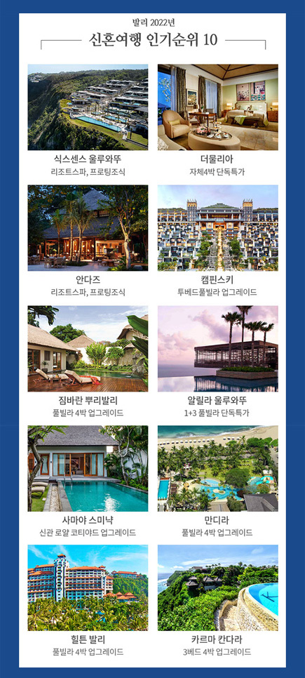 발리 2022년 신혼여행 인기 순위 10