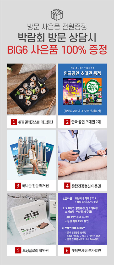 팜투어 신혼여행 박람회 참가 신청하시고 방문 상담 시 BIG 6 사은품 전원 증정 드린다죠?!