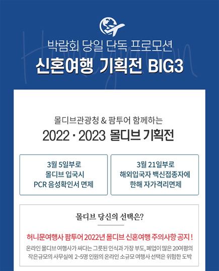 2022 · 2023 시즌한정 HONEYMOON 인기 신혼지 BIG 3 팜투어 발리 하와이 몰디브 신혼여행 경비 사전 예약 초특가 혜택으로 만날 수 있는 절호의 기회 챙겨요 ~♥
