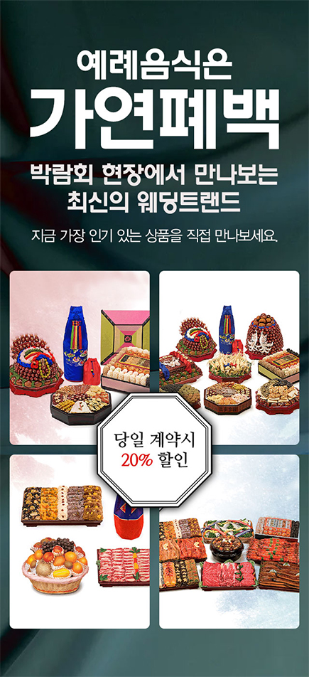 안산웨딩박람회 현장 폐백 상품 당일 계약 시 20% 할인으로 만나보세요.