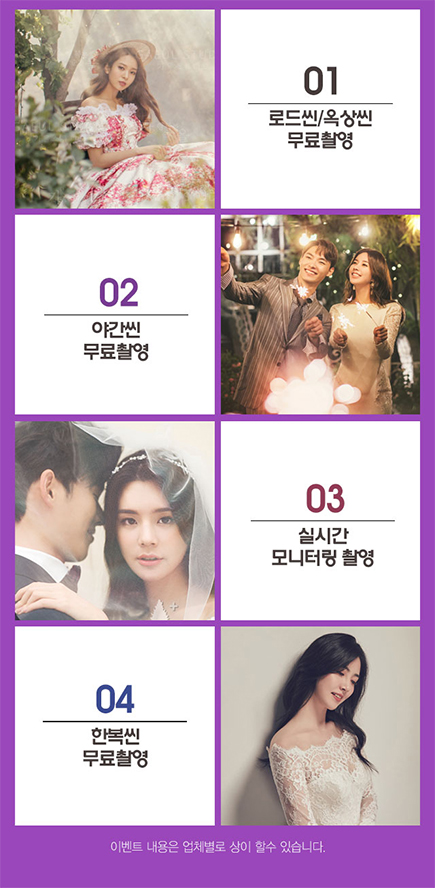 · 현장 정계약 시 신랑 (촬영/본식) 서비스 50% 할인