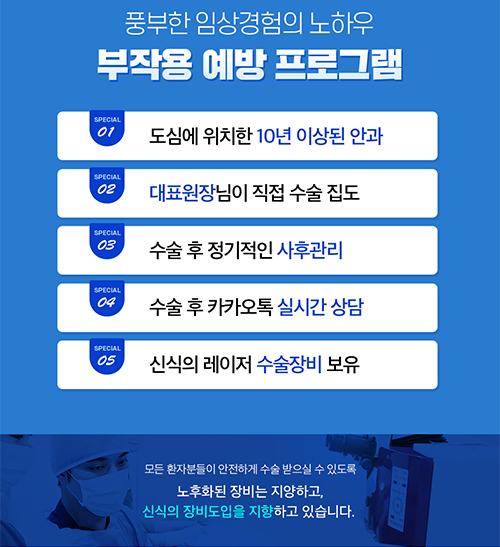 '부작용 최소화를 위한 체계적인 안과 정밀검사 (각막두께 확인 등) 후 조건 부합 시 수술진행'