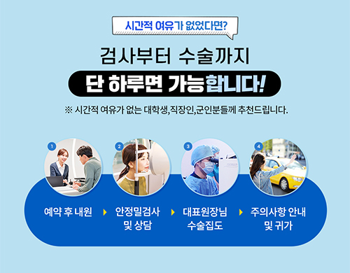 라식라섹수술 원데이 프로그램- 검사부터 수술까지 단 하루면 OK!