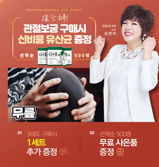선착순 500명 관절보궁 구매 시 신비움 유산균 증정 및 3세트 구매 시 1세트 추가 증정 관절보궁 판매처 구매 혜택 놓치지 마세요 ~♥