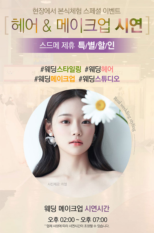 서울 결혼박람회 현장에서 직접 체험하고 나에게 어울리는 헤어 & 메이크업을 찾아보시고 스드메 제휴 특별 할인 혜택까지 챙기셔요!