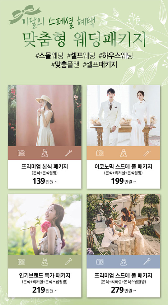 이달의 스페셜 혜택 맞춤형 웨딩패키지!