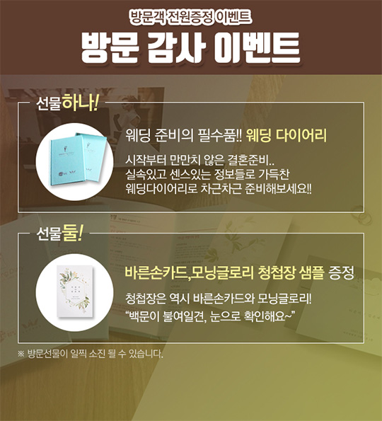 - 115만원 이상 계약시 : 고급 자개함+ 고급 예단봉투 증정