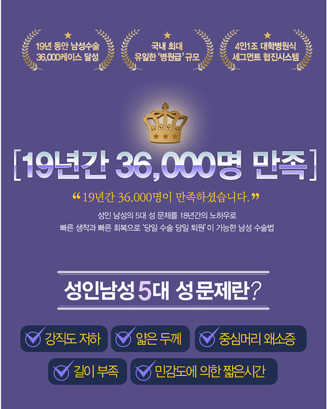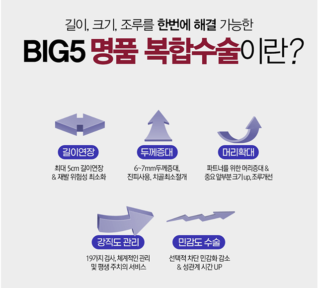 5대 남성 고민해결 (길이연장 · 음경확대 · 조루증 치료 · 귀두확대 · 발기부전 치료) 남성수술비용 복합수술 이벤트!