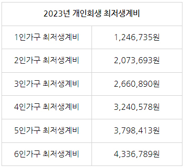 - 1인 가구 2023년 개인회생 최저생계비 (1,246,735원 ≫ 120만 원 가정)