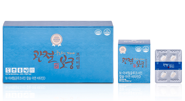 관절보궁 궁 기존 글루코사민보다 흡수율이 3배 높은 NAG (N-아세틸글루코사민) · 프랑스산 해조 칼슘 · 비타민 D 주원료 관절 및 연골에 도움을 줄 수 있으며 정상적인 혈액응고 및 골다공증 발생 위험 감소에 도움 부원료 보스웰리아 · 초록입홍합분말 함유 식 후 1일 2회 · 1회 2정 물과 함께 섭취하세요.