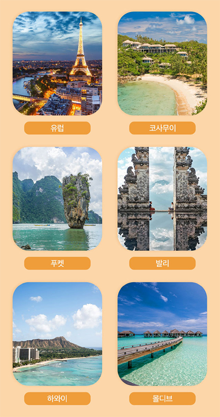 유럽 · 코사무이 · 하와이 · 발리 · 푸켓 · 몰디브 허니문 외 신혼여행 전 지역 꿈꿔왔던 허니문 환율 더 오르기 전 미리 계약하고 최대 혜택으로 다녀오세요 ~♡