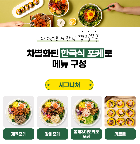 포케 & 한식 & 양식 & 커피 전문 개발자의 메뉴 & 상품 개발로 검증된 맛과 신선함을 제공합니다.