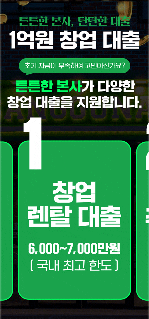 튼튼한 본사 탄탄한 대출 튼튼한 본사가 다양한 창업 대출을 지원합니다.