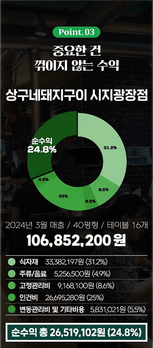 상구네돼지구이 시지광장점 2024년 3월 매출/ 40평형/ 테이블 16개