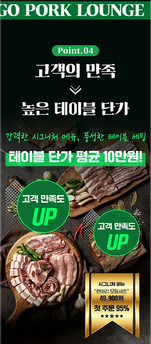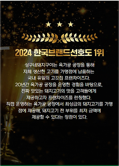 하지만 내가 정말 자신 있게 생각하는 진짜 맛있는 돼지고기를 전국에 많은 분들께서 드셔보시면 얼마나 행복할까?라는 생각에서 품질에 대한 확신을 가지고 가맹 사업을 다짐하게 되었습니다.