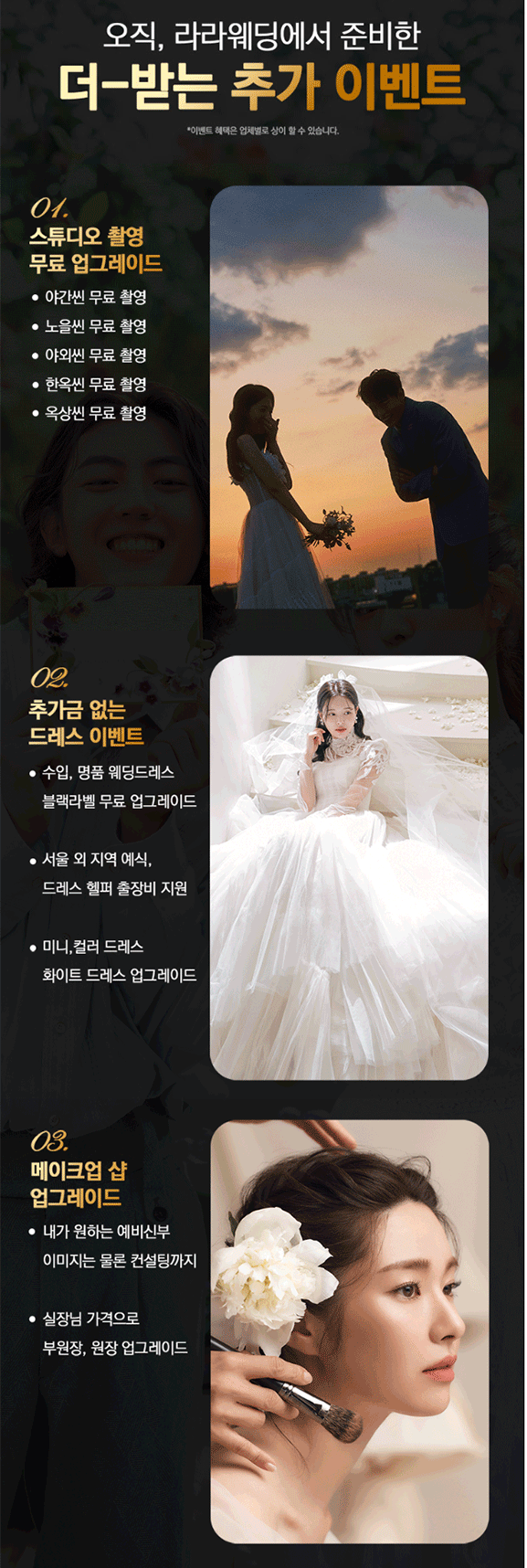 - 오직 라라웨딩에서 준비한 더 받는 추가 이벤트