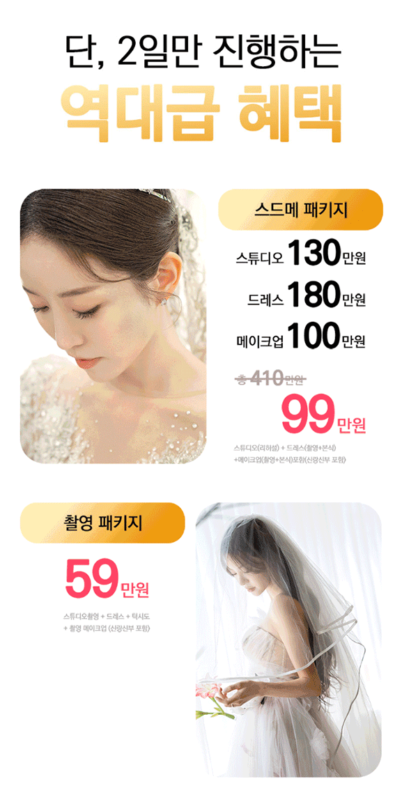 - 단 2일만 진행하는 역대급 혜택 스드메패키지비용